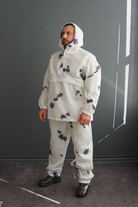 Маскувальний костюм одягається поверх основного одягу і не сковує рухи. Ця модель забезпечує чудове маскування серед засніженої місцевості.
